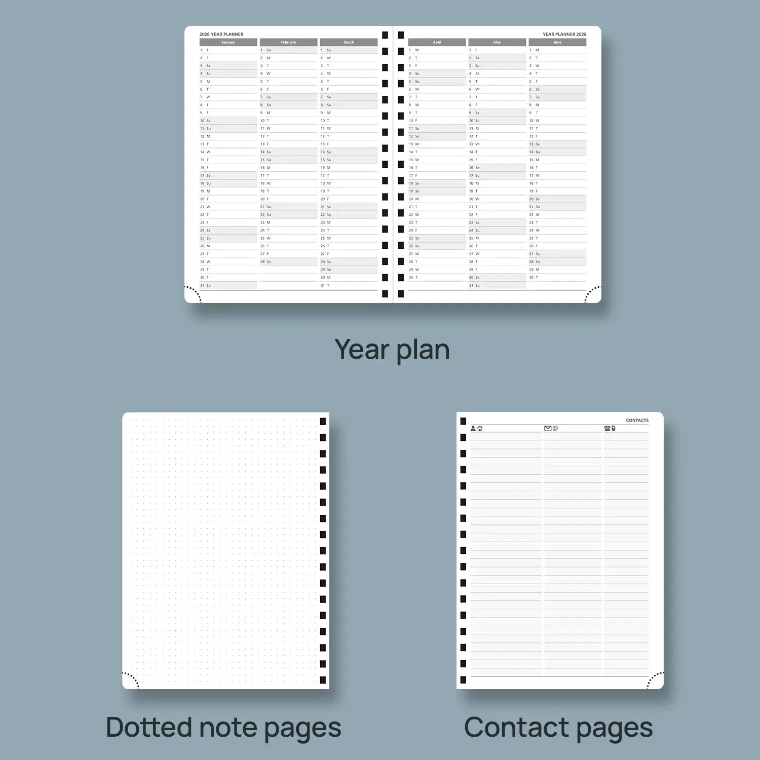 Bring order, clarity, and calm to your year with the POPRUN Weekly Planner. Designed for January through December 2026, this medium-sized hardcover planner blends spacious layouts with practical features to help you balance work, school, and personal life. With a clean weekly structure, extra writing space, and eco-conscious materials, it’s more than just a planner—it’s your daily partner in staying organized, focused, and inspired.