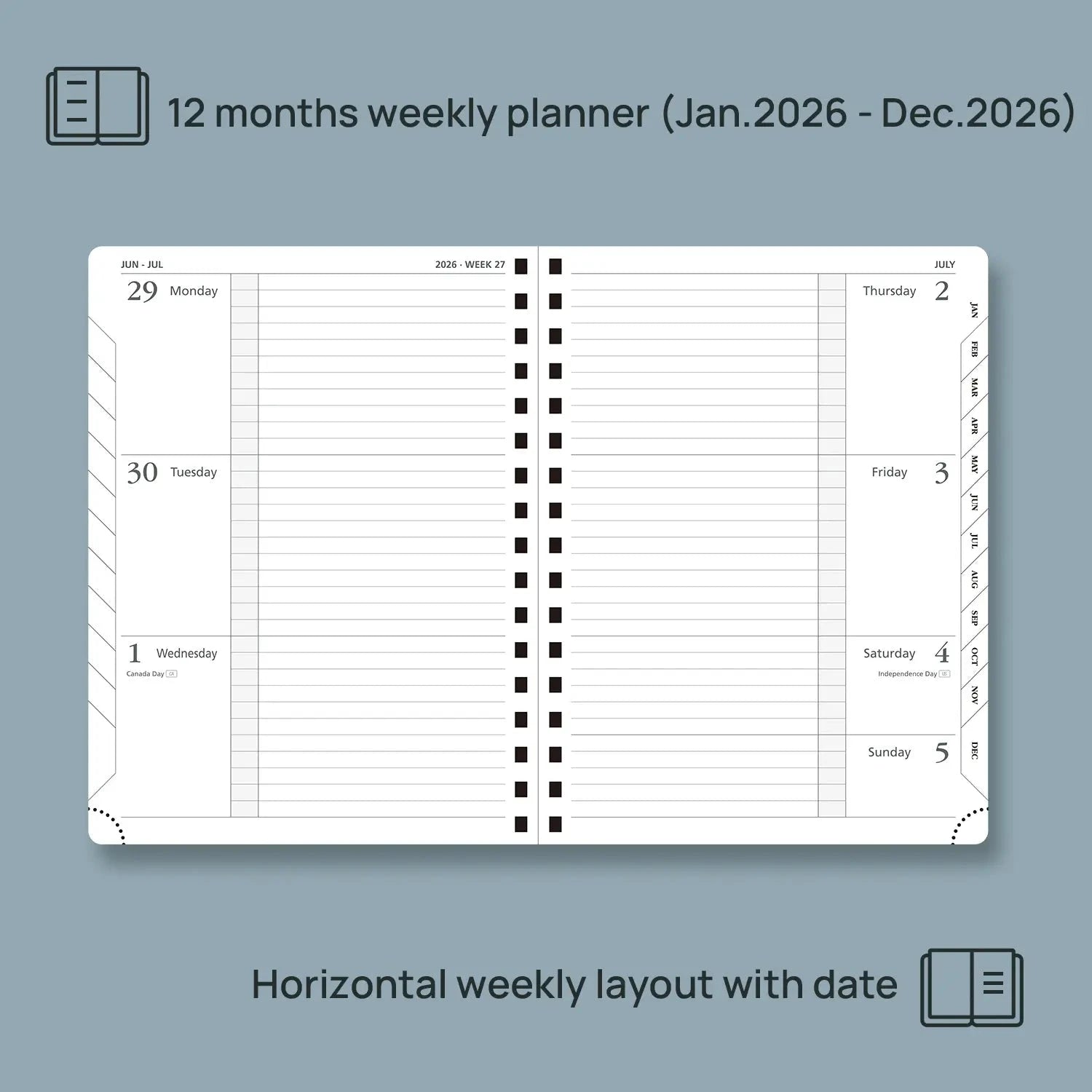 6.75x8.75 Weekly Planner 2026 Spiral Hardcover|Horizontal Layout