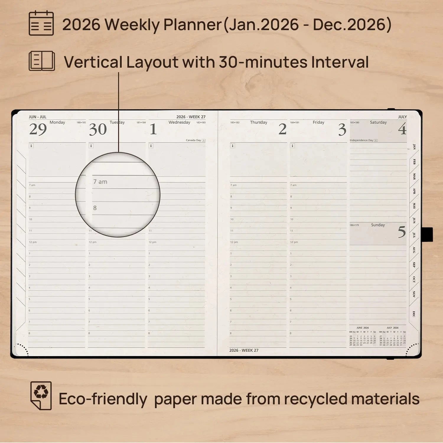 8.5x10.5 Recycled Weekly Planner 2026 Hardcover