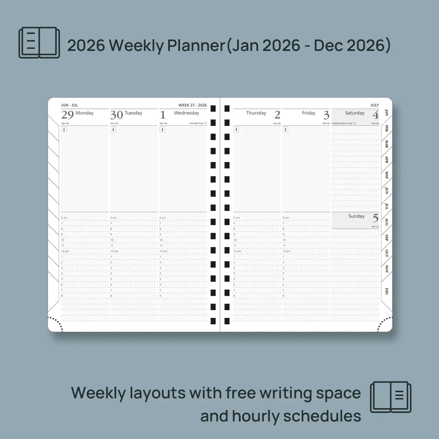 8.5x6.25 Weekly Planner 2026 Spiral Hardcover Calendar Planner