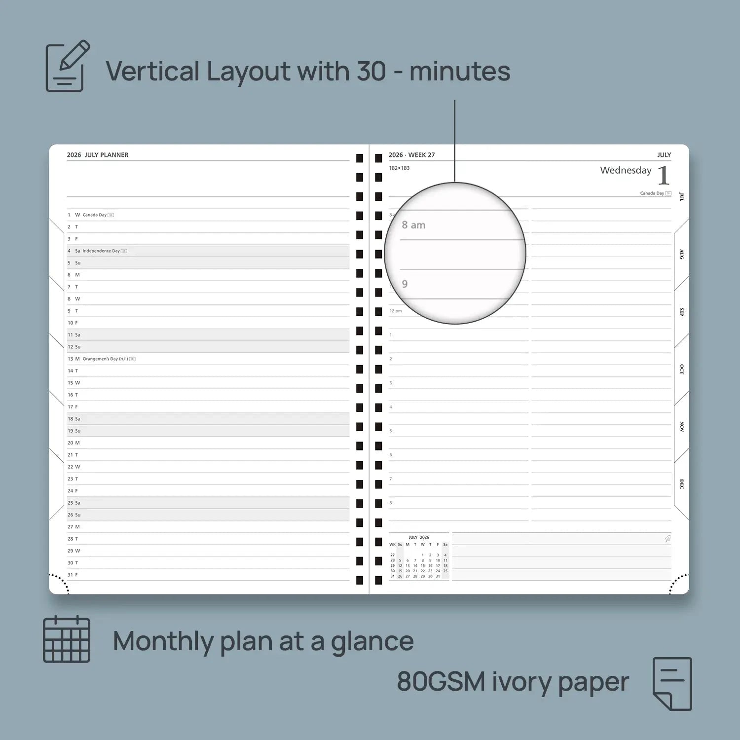 A4 Daily Planner 2026 Spiral Hardcover Calendar Planner