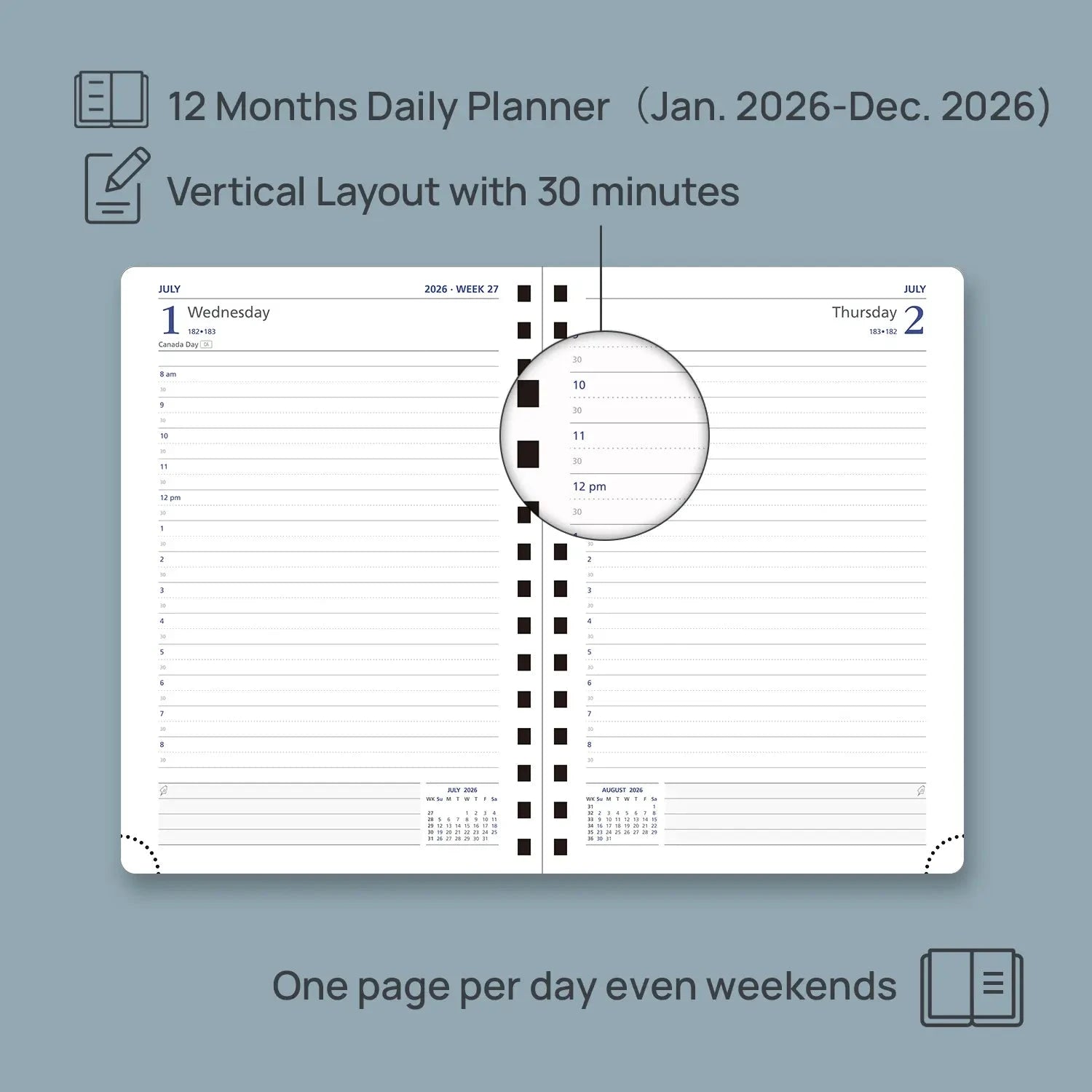 A5 Daily Planner 2026 Spirale Softcover Calendar Planner