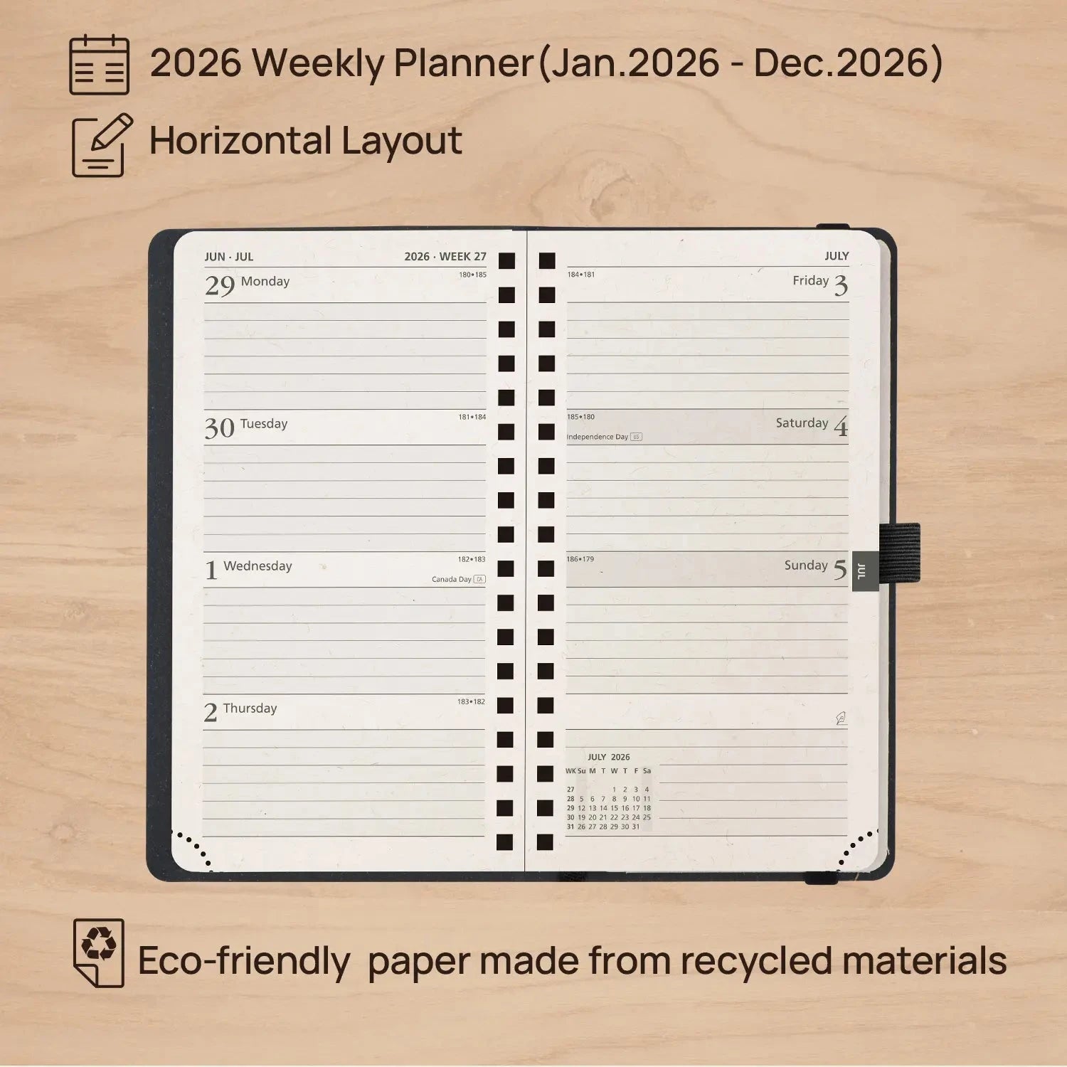 Pocket Recycled Weekly Planner 2026 Spiral Hardcover