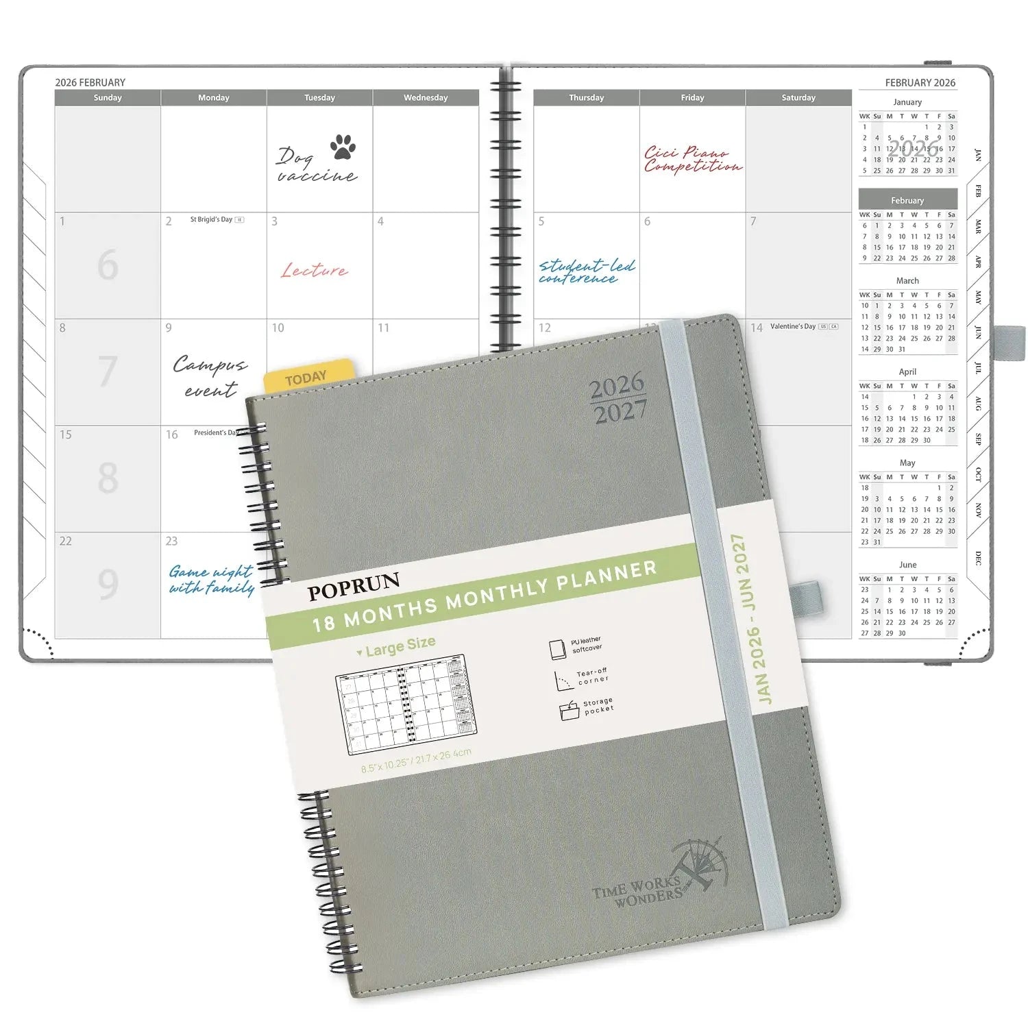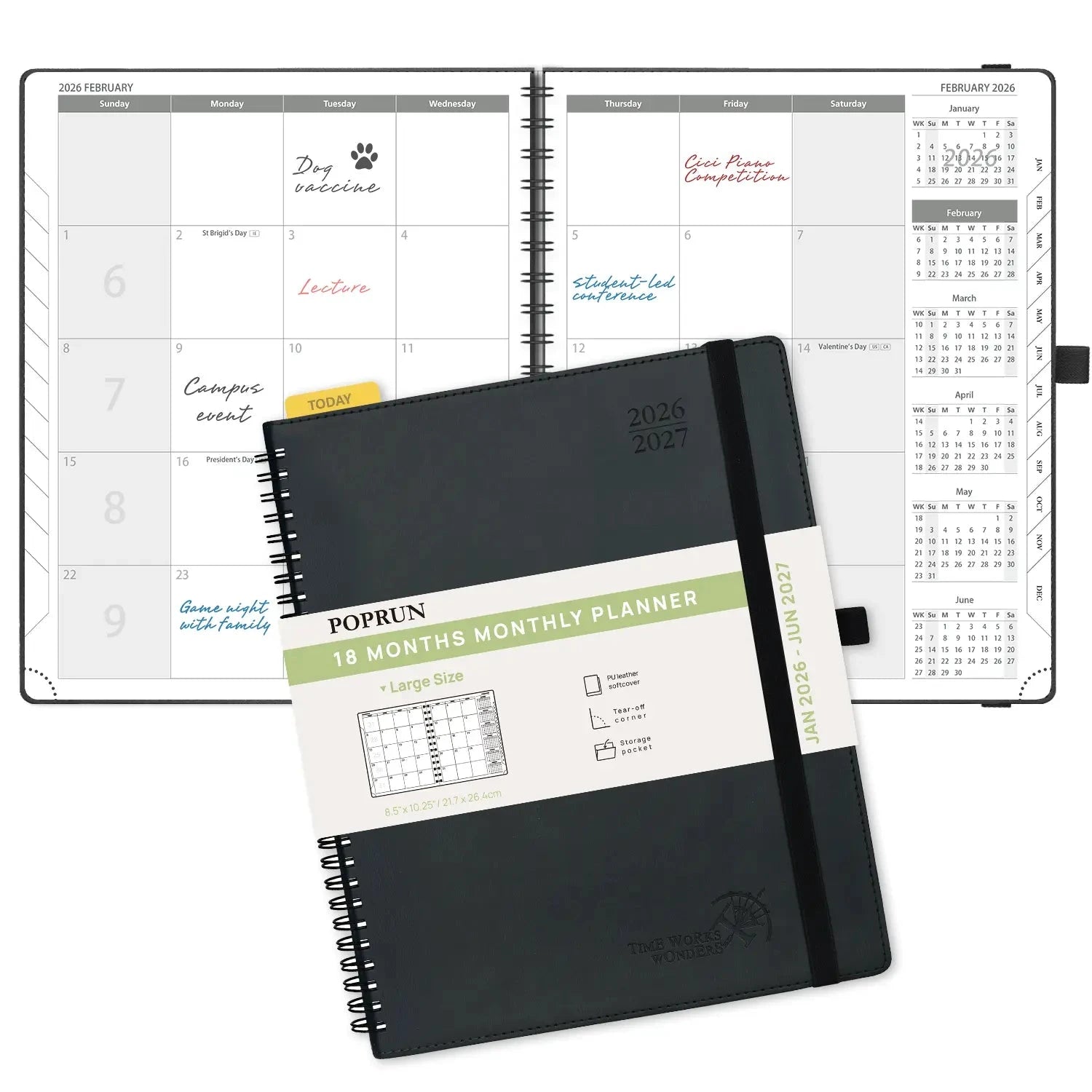POPRUN 18 Month - Softcover Monthly planner Maximize productivity and reach your potential with our 2026 Monthly Planner! With 18 months of planning, you'll have ample space to organize your goals and tasks through the weekly and monthly views. This personalized planner is the ultimate tool for reducing stress and promoting self-discipline in all aspects of life. Whether it's work, family, or personal endeavors, our planner will be your faithful ally. |