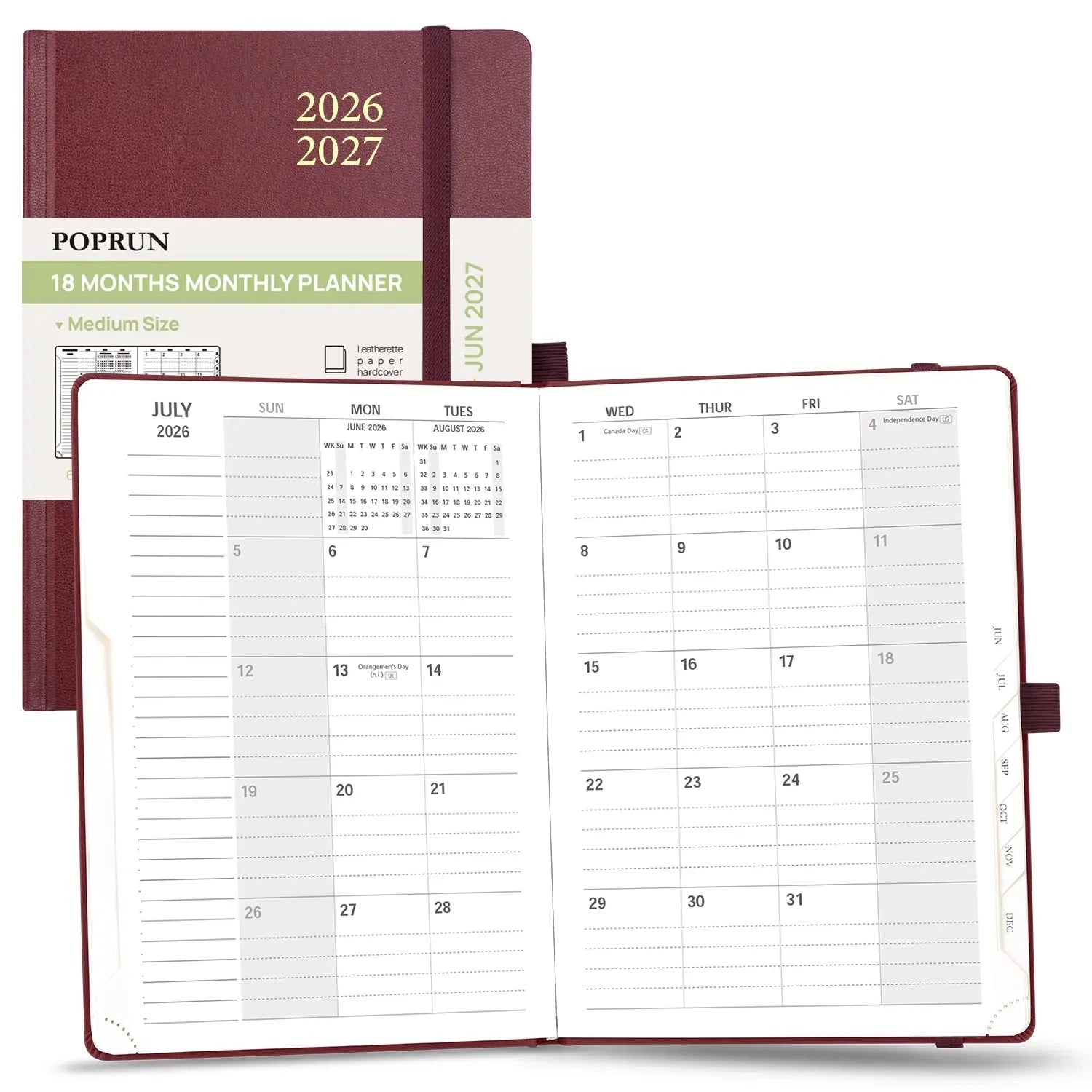 POPRUN 18 Month - Hardcover Monthly planner Keep your work and personal life in balance with our 18-month monthly planner. Covering January 2026 through June 2027, it provides a clear monthly layout to efficiently map out long-term goals, important tasks, and personal milestones. The monthly view offers a broad overview of your schedule, while the extended 18-month format ensures you can plan further ahead with confidence. Designed for busy professionals, students, and anyone managing multiple priorities, this planner helps you stay organized and in control every step of the way. |