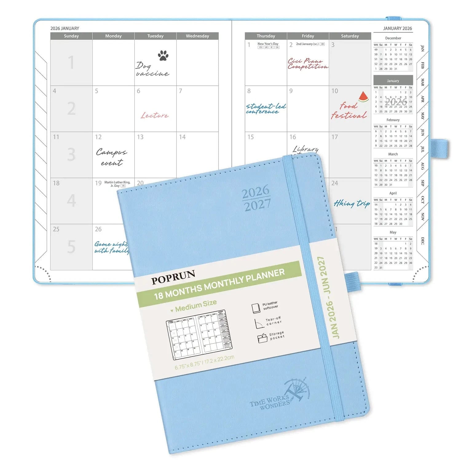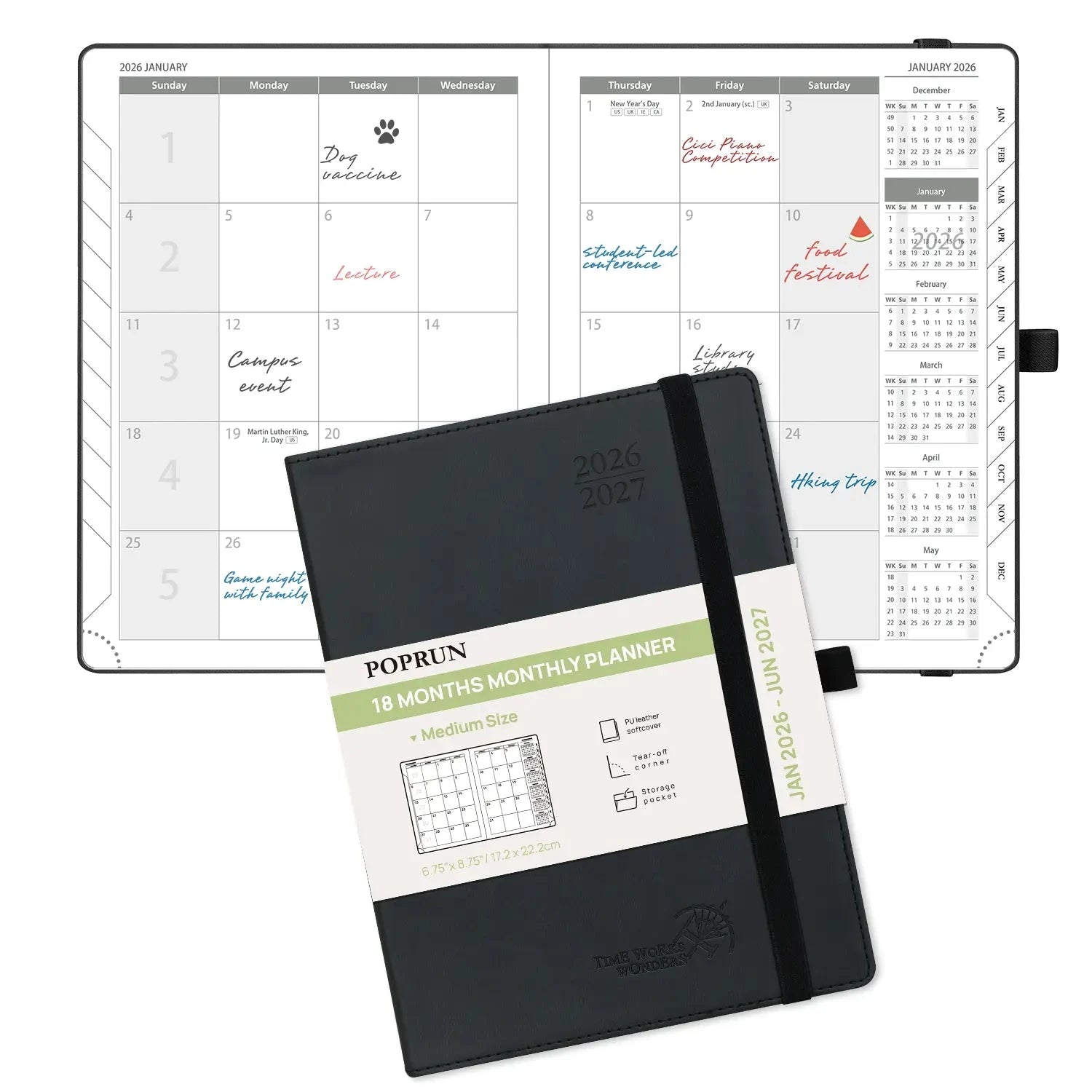 POPRUN 18 Month - Softcover Monthly planner Maximize productivity and reach your potential with our 2026 Monthly Planner! With 18 months of planning, you'll have ample space to organize your goals and tasks through the weekly and monthly views. This personalized planner is the ultimate tool for reducing stress and promoting self-discipline in all aspects of life. Whether it's work, family, or personal endeavors, our planner will be your faithful ally. |