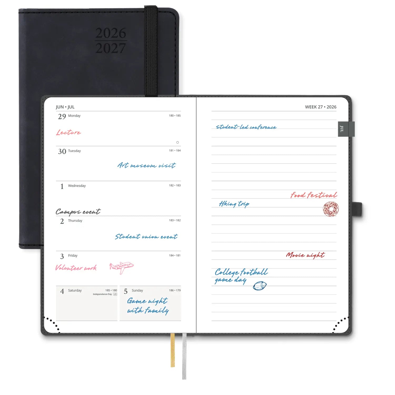 This Weekly Academic Planner features durable spiral binding and smooth, thick 100 gsm acid-free ivory paper, built to lay flat and withstand everyday use. Covering July through June, it supports the natural rhythm of semesters, exams, and weekly deadlines.