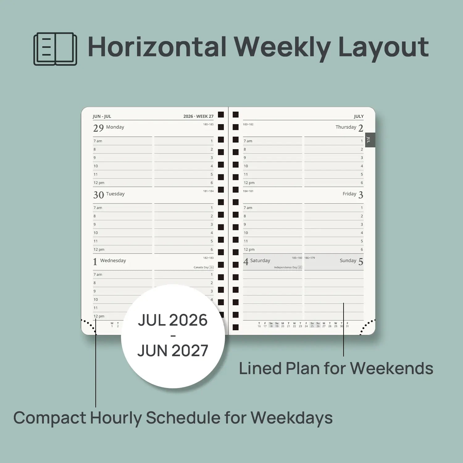 A6 Size Weekly Academic Planner 2026-2027 12-Month Spiral Softcover|Hourly Time Slots