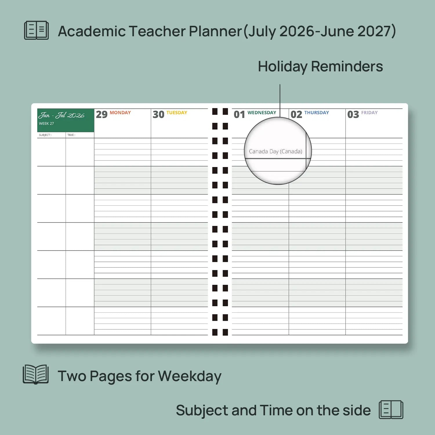 - Planner Layout: Vertical, 2 pages per week