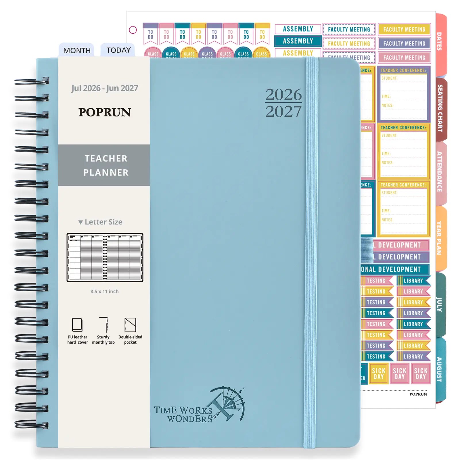 POPRUN 12-Month Leather Cover Teacher Lesson Planner Designed for real classroom days — not perfect ones. Whether you're a new teacher just starting to build your teaching system, a busy educator managing multiple classes, or a seasoned teacher looking to streamline your workflow. This planner adapts to your teaching style—and supports you at every step of your daily routine. |
