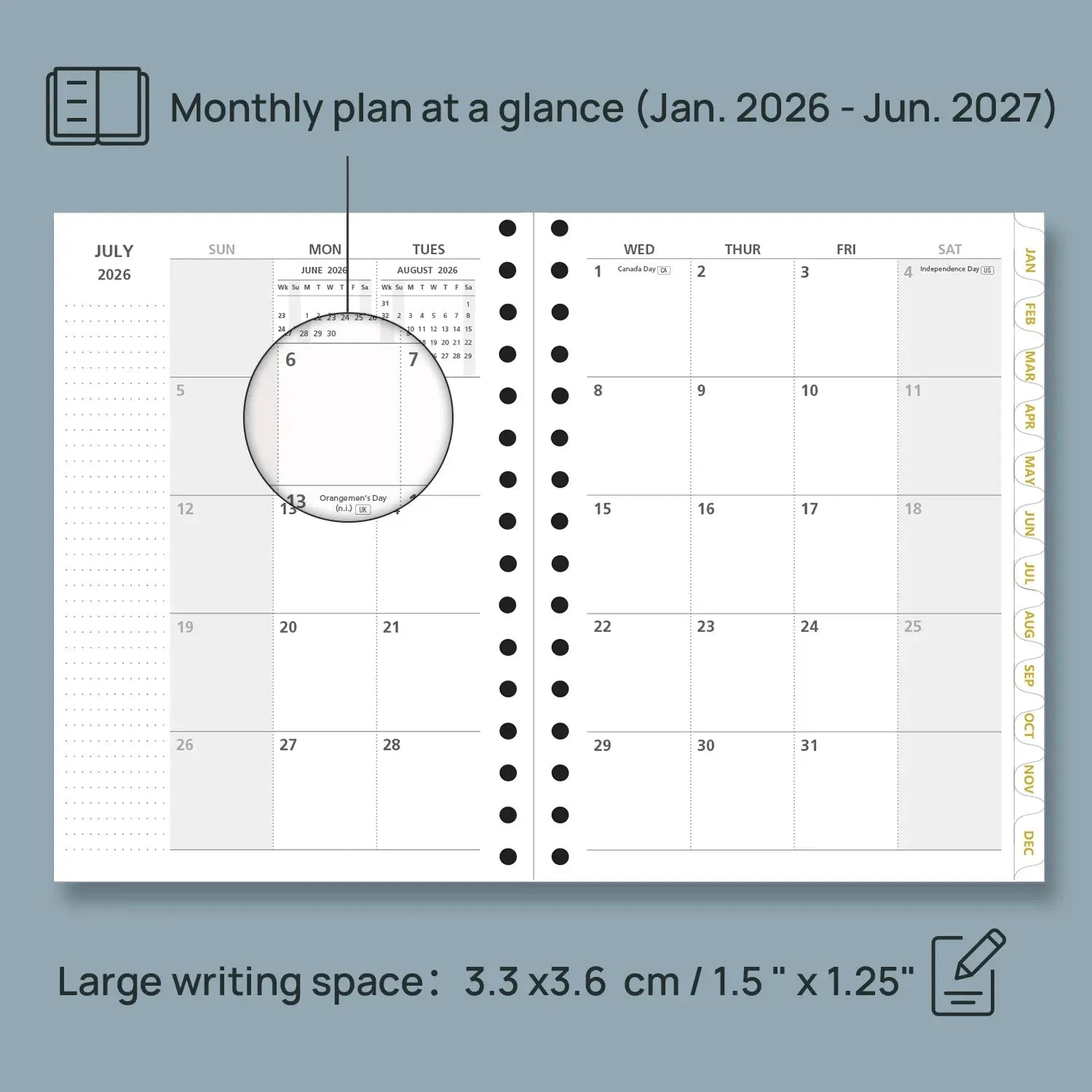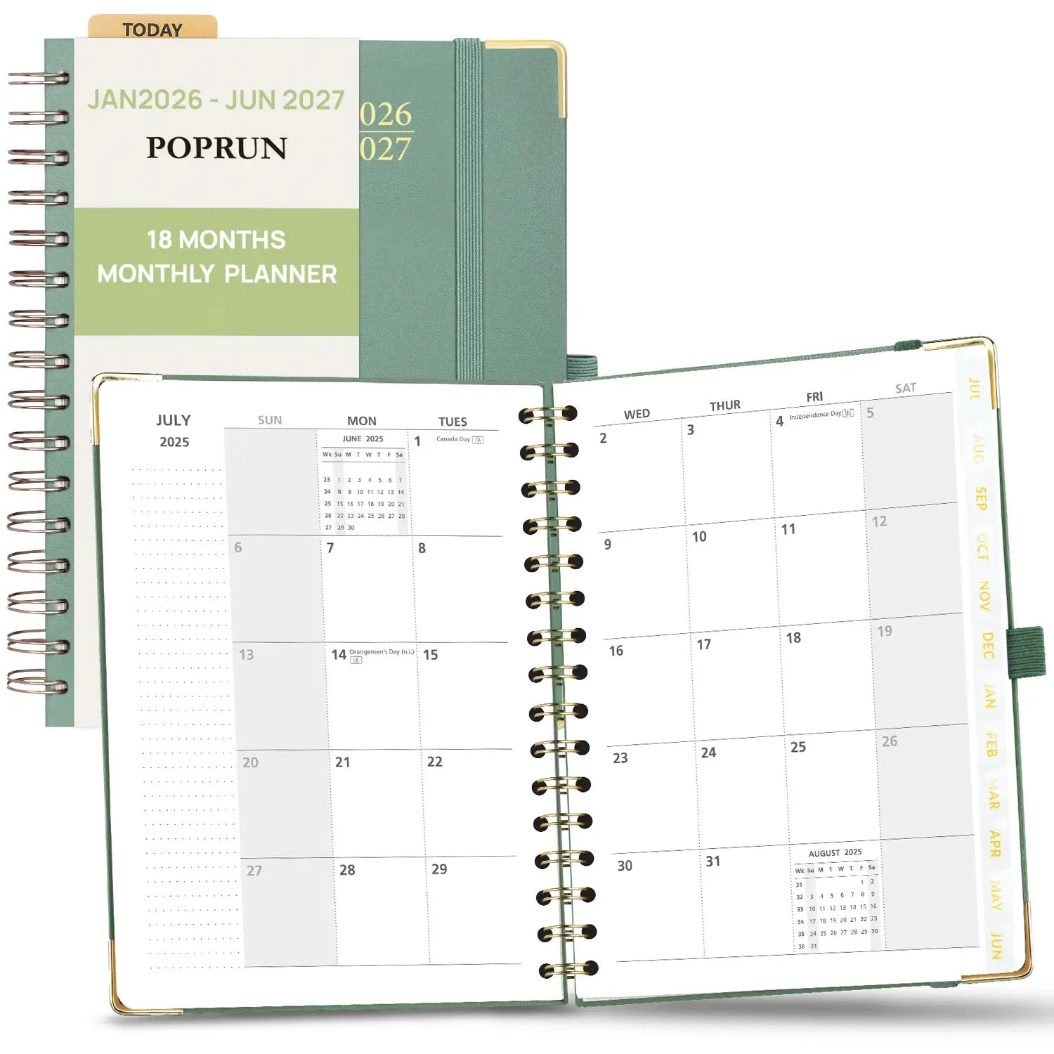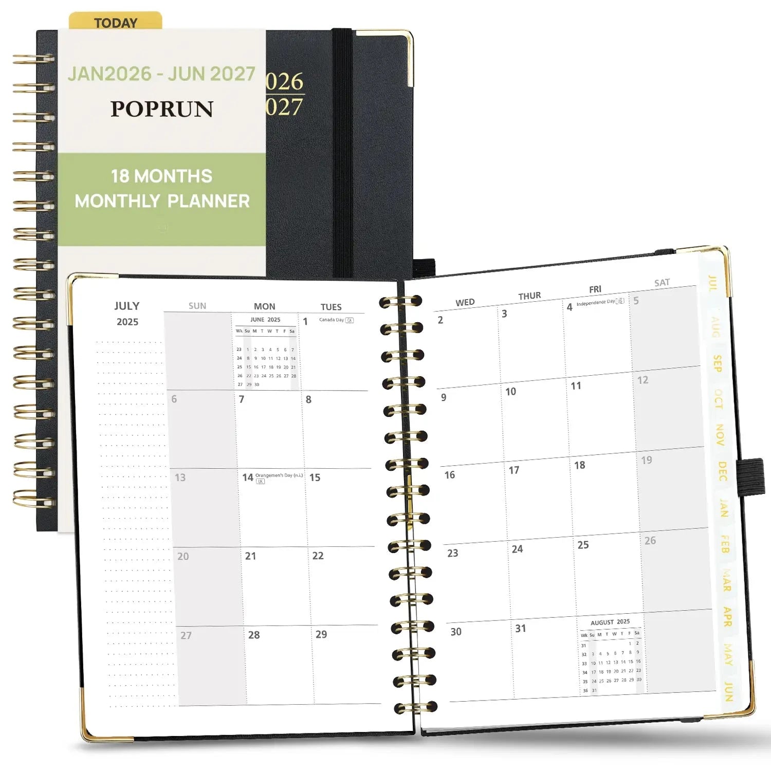 POPRUN 18 Month - Hardcover Monthly planner Keep your work and personal life in balance with our 18-month monthly planner. Covering January 2026 through June 2027, it provides a clear monthly layout to efficiently map out long-term goals, important tasks, and personal milestones. The monthly view offers a broad overview of your schedule, while the extended 18-month format ensures you can plan further ahead with confidence. Designed for busy professionals, students, and anyone managing multiple priorities, this planner helps you stay organized and in control every step of the way. |