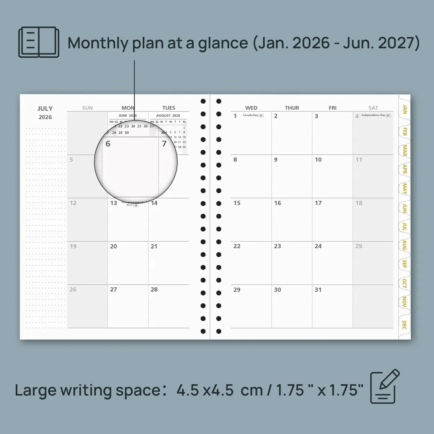 POPRUN 18 Month - Hardcover Monthly planner Keep your work and personal life in balance with our 18-month monthly planner. Covering January 2026 through June 2027, it provides a clear monthly layout to efficiently map out long-term goals, important tasks, and personal milestones. The monthly view offers a broad overview of your schedule, while the extended 18-month format ensures you can plan further ahead with confidence. Designed for busy professionals, students, and anyone managing multiple priorities, this planner helps you stay organized and in control every step of the way. |