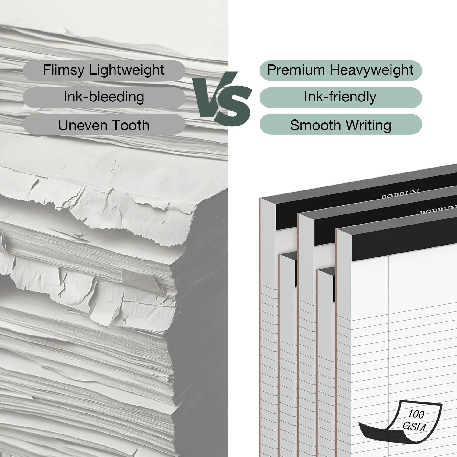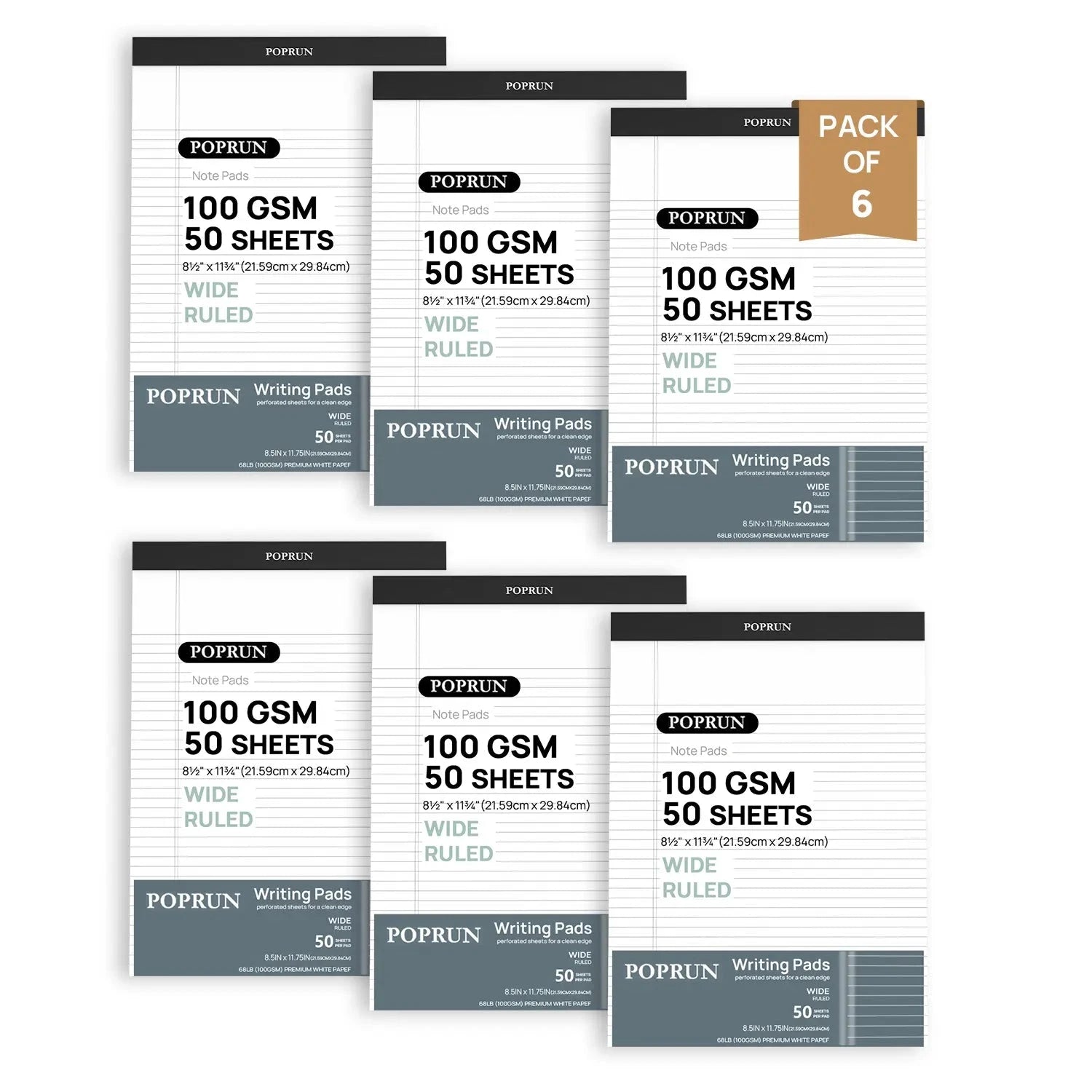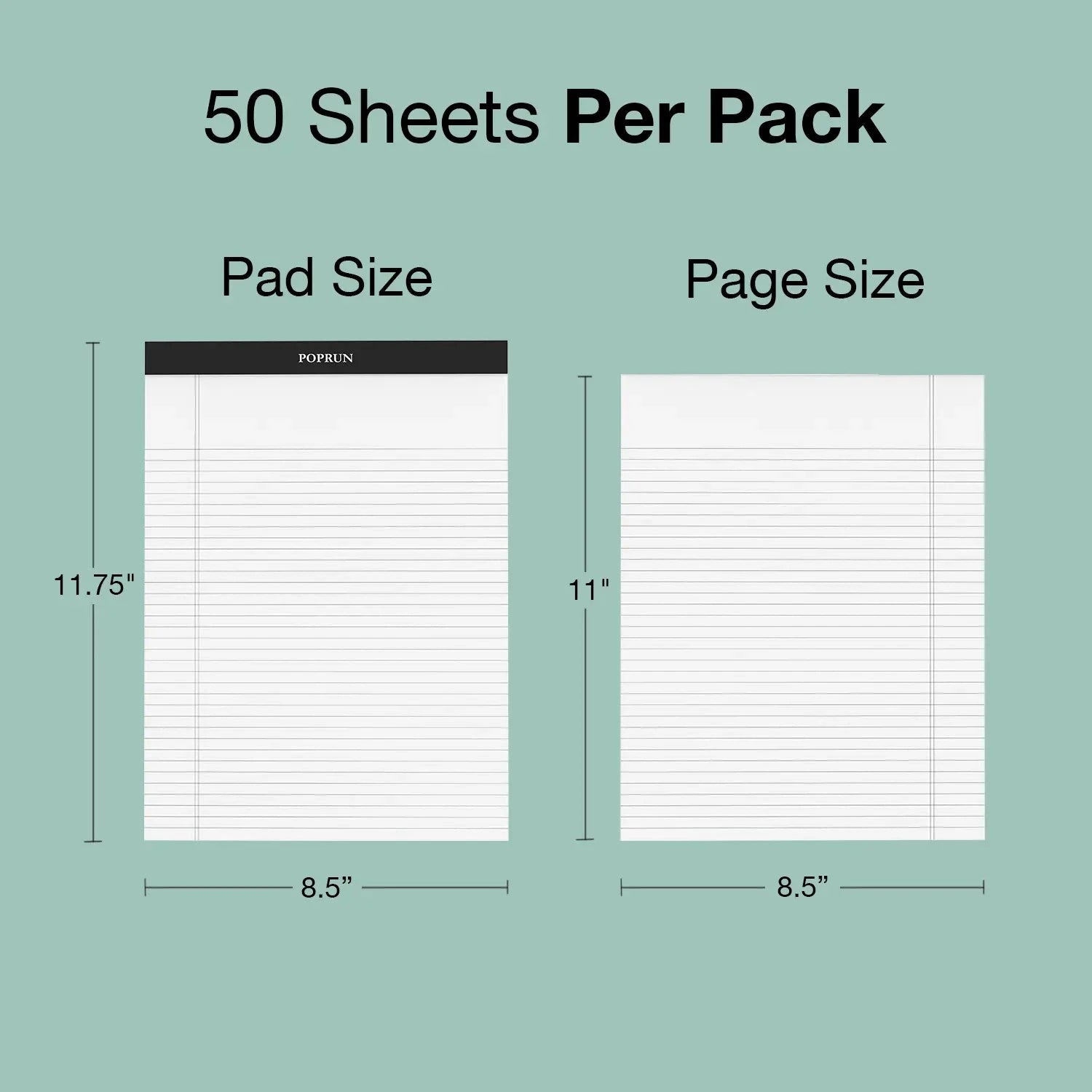 • Premium Quality & Durable Lined Paper: POPRUN Legal Pads contains 50 sheets (per Pack) of 100GSM thick white paper — equivalent to the thickness of 125 sheets of 80GSM paper — paired with a bleed-resistant surface that enables effortless writing with pens or pencils.
