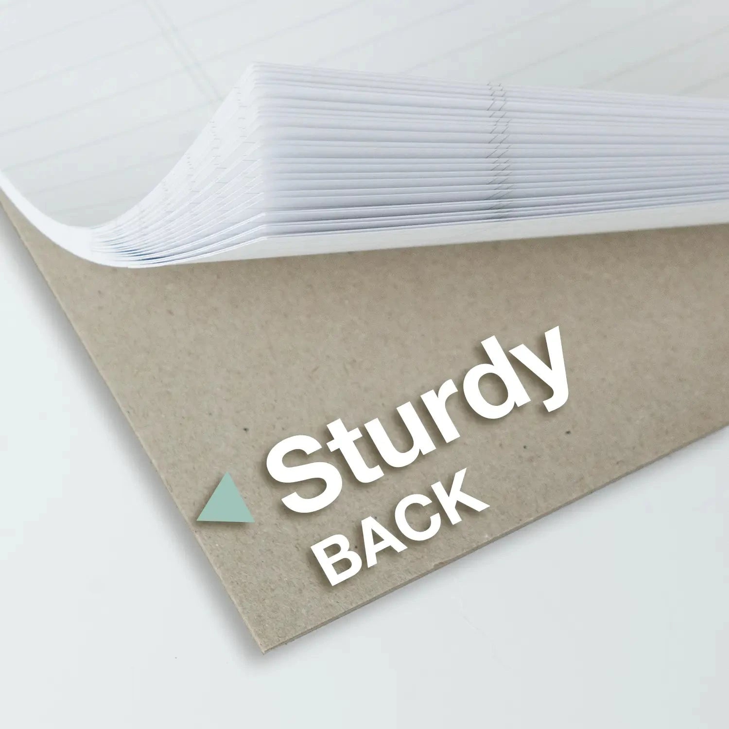 • Heavy-duty 900 GSM Backboard: Built with an ultra-rigid backboard, this notepad stays firmly planted on any surface. The rugged construction prevents slips and bends during vigorous writing or sketching, while remaining slim enough for daily carry in briefcases or backpacks.