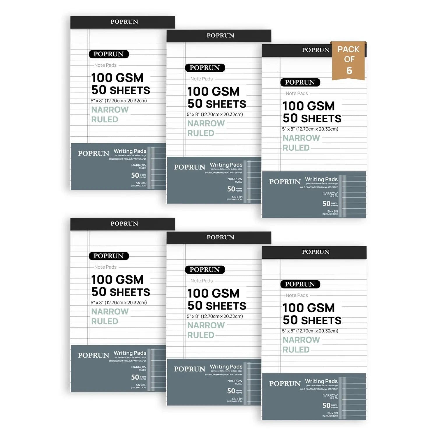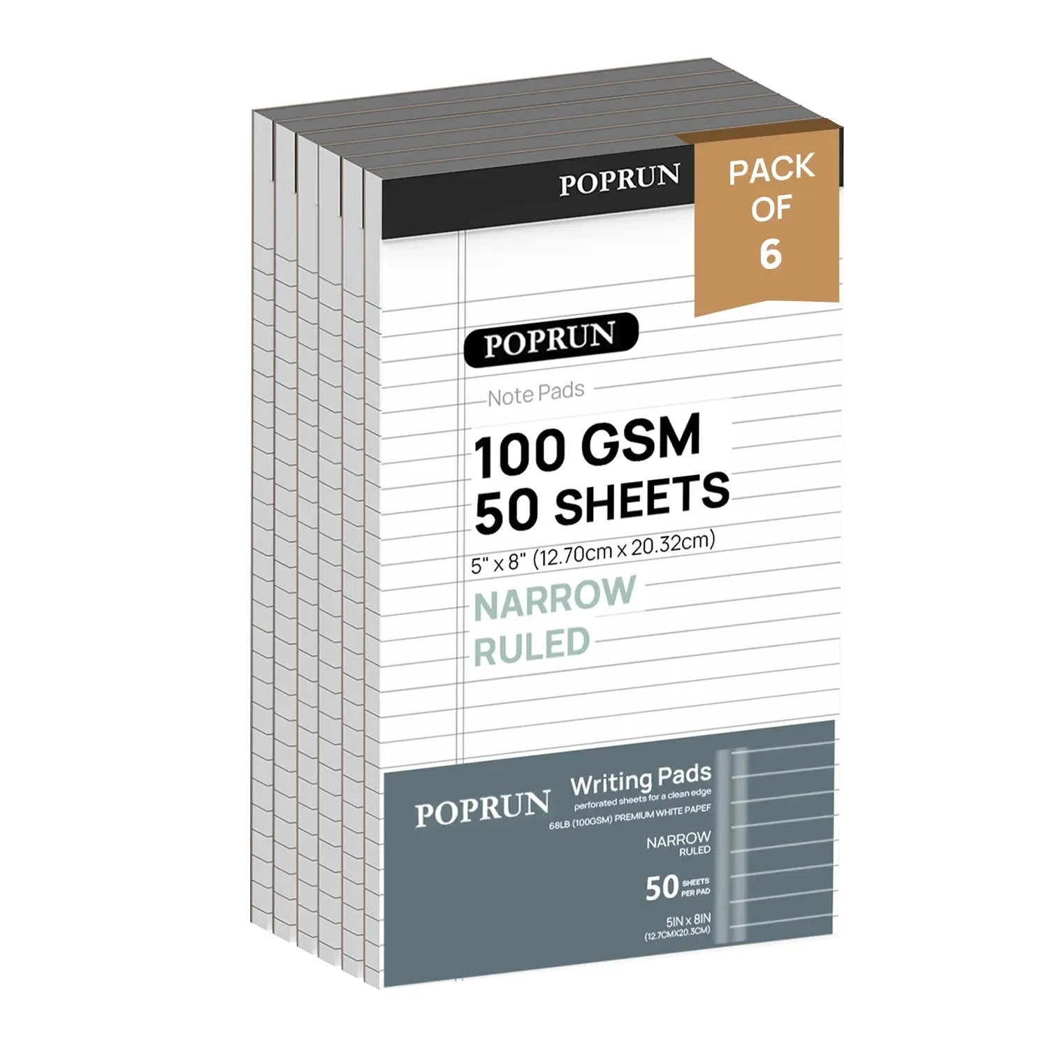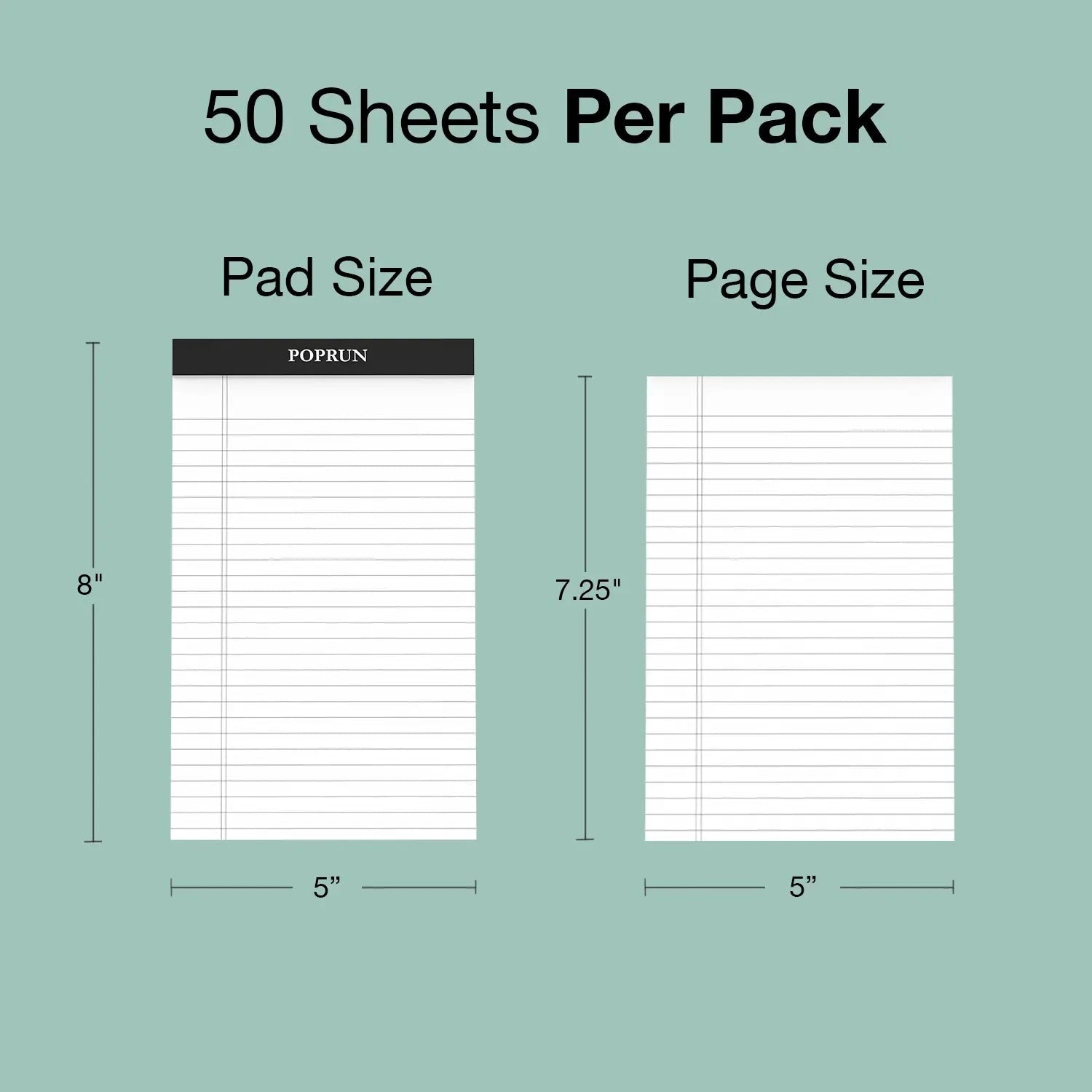 - Premium Quality & Durable Lined Paper: POPRUN Legal Pads contains 50 sheets (per Pack) of 100GSM thick white paper — equivalent to the thickness of 125 sheets of 80GSM paper — paired with a bleed-resistant surface that enables effortless writing with pens or pencils.