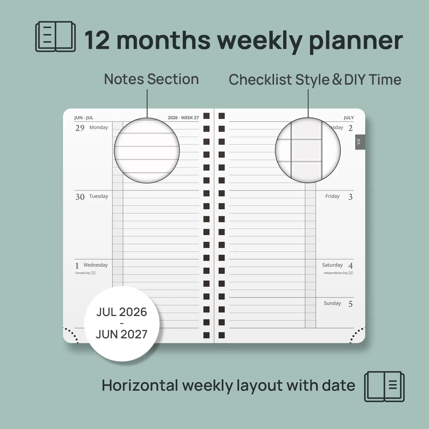 A6 Size Academic Weekly Planner 2026-2027 Spiral Softcover | Horizontal Layout