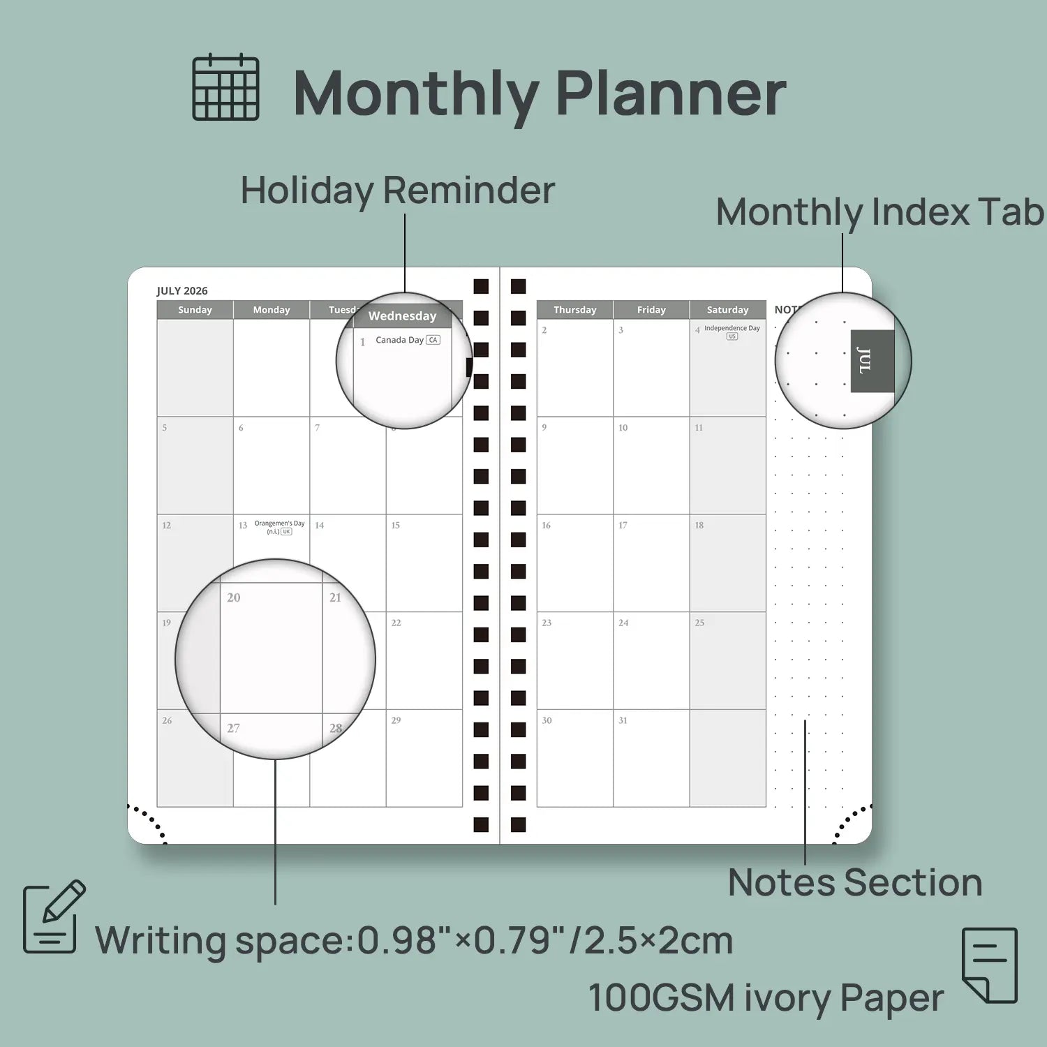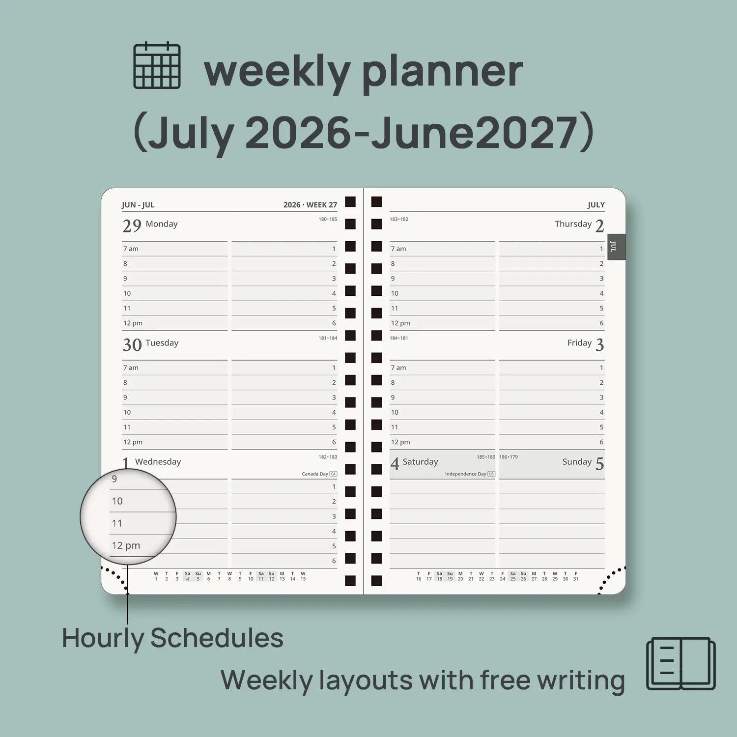 A6 Size Weekly Academic Planner 2026-2027 12-Month Spiral Hardcover