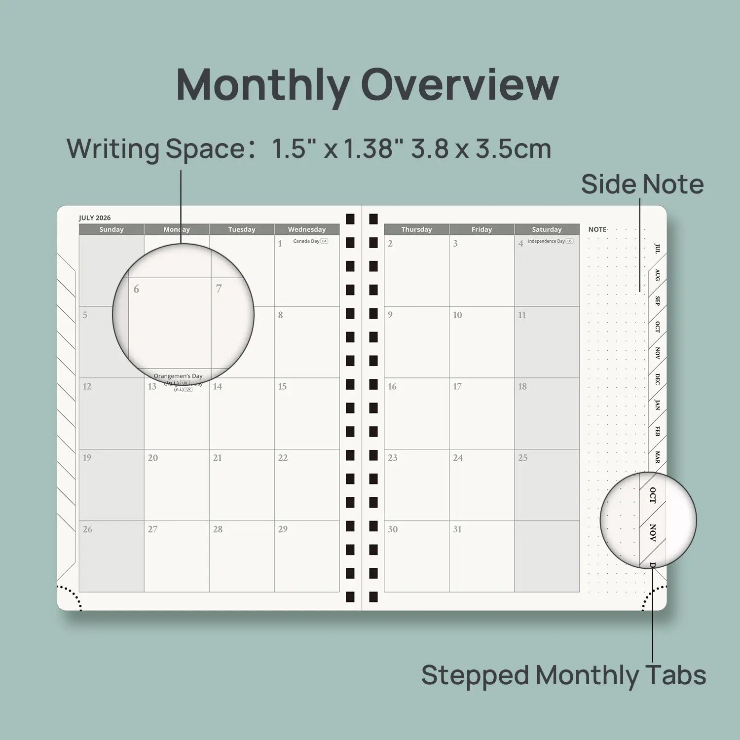 This Weekly Academic Planner features durable spiral binding and smooth, thick 100 gsm acid-free ivory paper, built to lay flat and withstand everyday use. Covering July through June, it supports the natural rhythm of semesters, exams, and weekly deadlines.