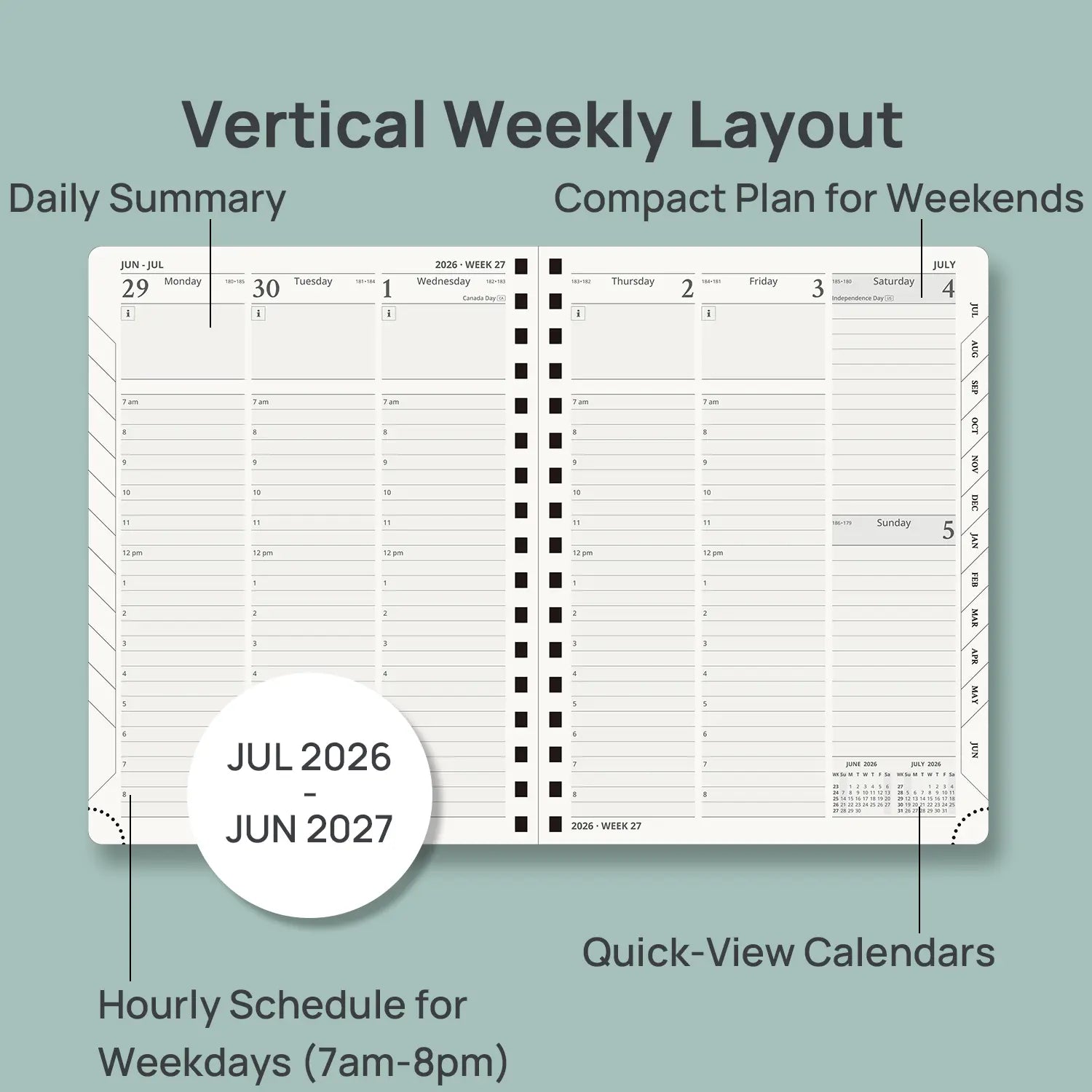 6.5“x8.5” Weekly Academic Planner 2026-2027 12-Month Spiral Softcover|Hourly Time Slots